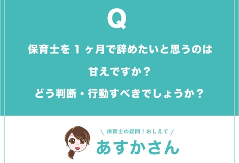 保育士になって1ヶ月。 憧れだった保育士にせっかくなったにも関わらず、たった1ヶ月で辞めたいと考えるのは甘えでしょうか?....